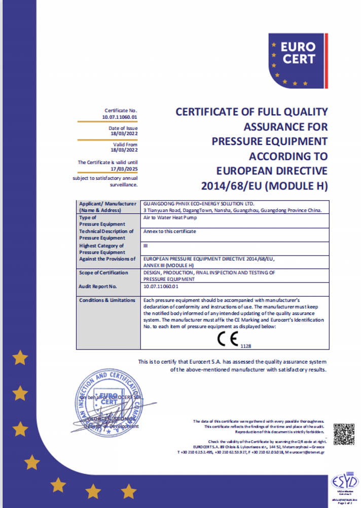標(biāo)簽: 經(jīng)過不懈的努力,本月高效拿到采暖機高端機R32冷媒和R290冷媒10個型號系列的首張PED(Pressure equipment certification)新認(rèn)證突破證書,該證書代表歐盟對帶壓力設(shè)備的熱泵整機的高標(biāo)準(zhǔn)及認(rèn)證要求。
