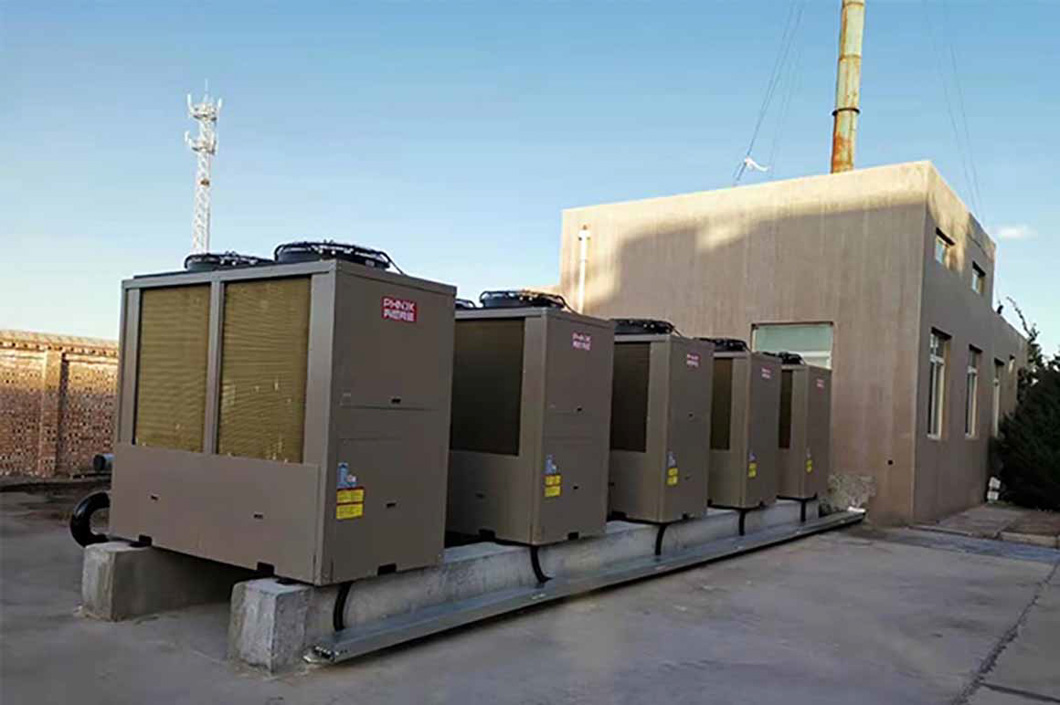 3.為保證采暖效果,鑄鐵暖氣片需求的水溫需達到65℃以上,故采用芬尼克茲高溫復疊機進行采暖,最高出水溫度達85℃,最低運行環溫達-30℃。
