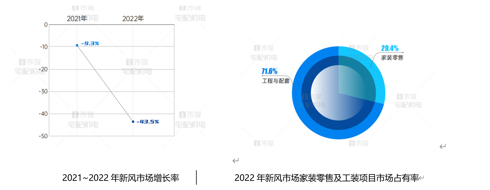2022年,多地疫情反復、多個期房項目停工等超預期因素頻出,疊加中長期住房需求動能釋放減弱,房地產行業面臨的挑戰前所未有,年初以來調控政策及信貸環境不斷優化,但政策效果并不明顯,房地產市場深度調整態勢未改。數據顯示,2022年1-11月份,精裝商品房項目新開盤累計數量1811個,同比-41.2%,開盤房間數量累計133萬套,同比-48%;對房地產精裝配套過渡依賴的新風行業深刻的感受到了來自上游市場的寒意,22年新風行業市場增長率同比-43.5%。