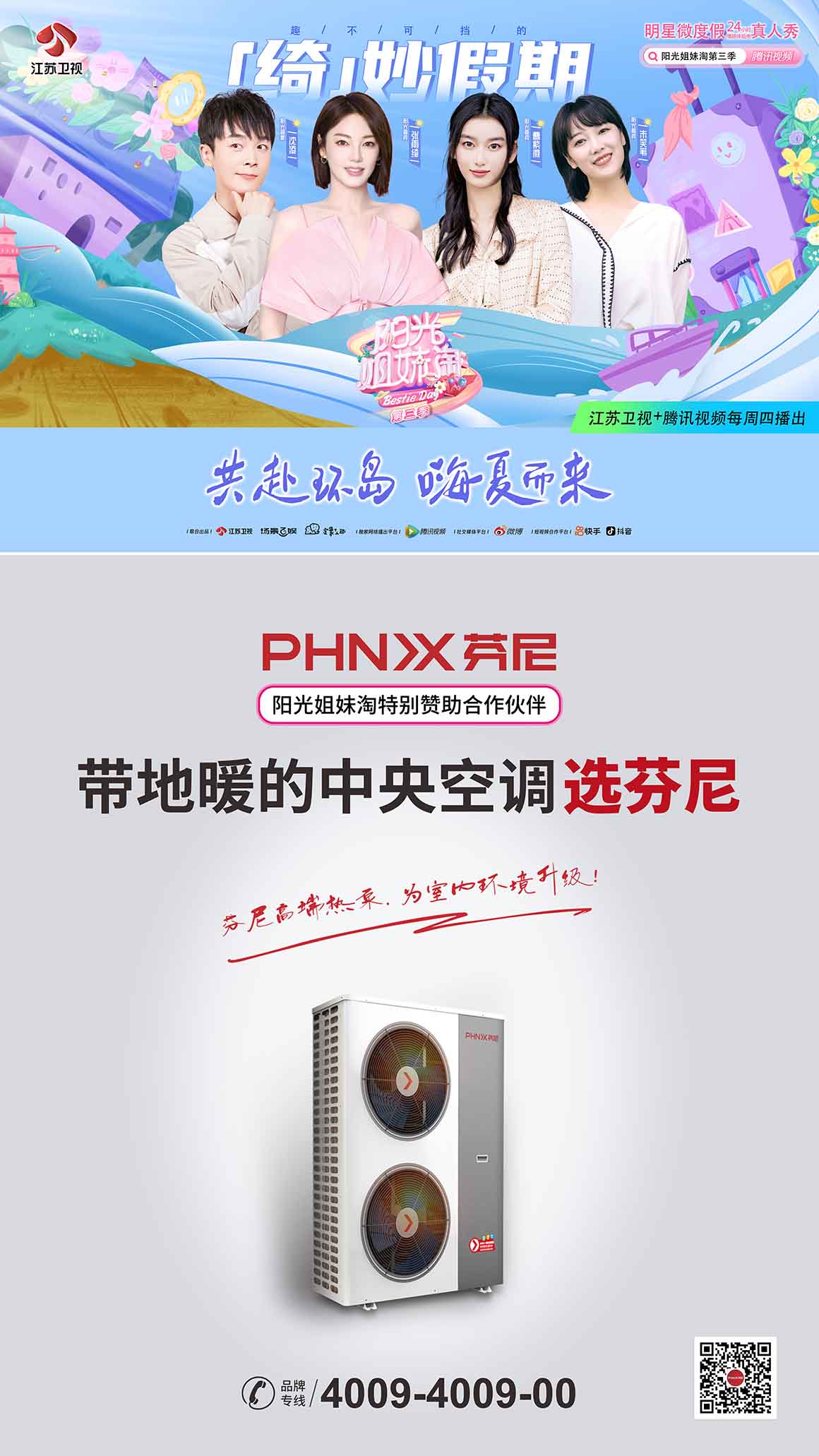 憑借高品質(zhì)好口碑,芬尼受邀成為《陽光姐妹淘》第三季特別贊助合作伙伴。