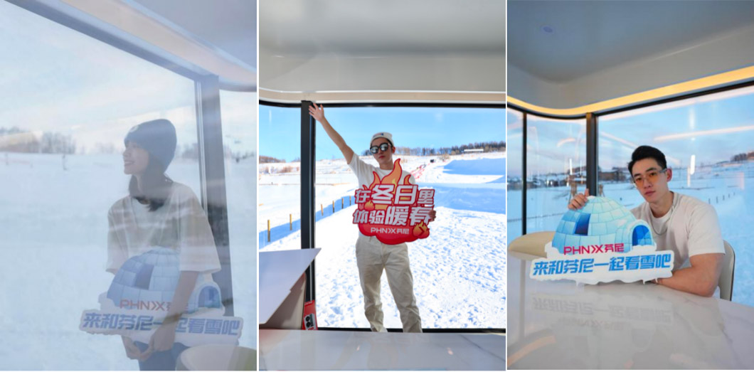 據悉,各路微博抖音的百萬大v被這次極寒采暖體驗艙超酷的設計吸引到現場,并為之打call ! 在這360°玻璃屋邊欣賞雪景,滿足了你對冬日悠閑玩雪的各種期待,感受浪漫的冬天之余,還可以體驗一把穿著短袖吃著雪糕,妥妥地冰火兩重天的生活呢。