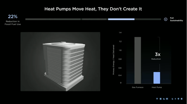 而后,他著重強調了熱泵技術的重要性,要讓家庭用戶、企業耗能、工農業生產盡可能地轉向熱泵,馬斯克指出,這將為建筑物供暖減少33倍的能耗,無論是從行業角度還是減碳環保角度來看,熱泵都將是未來熱能高效利用的必要途徑之一。