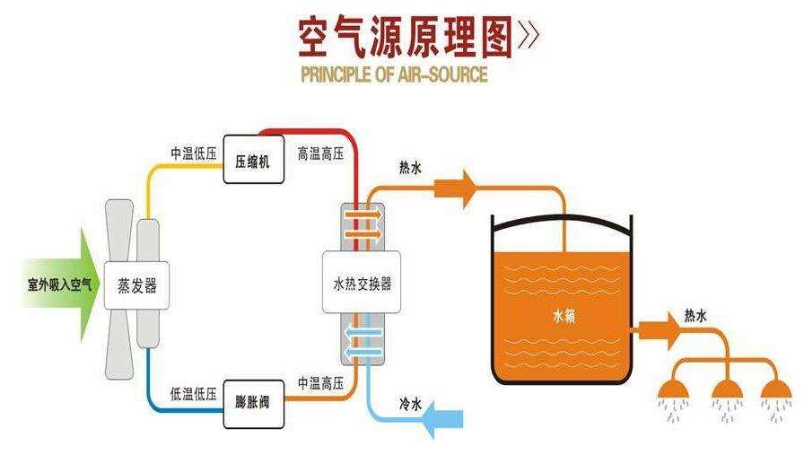 為什么空氣能熱泵這么受歡迎?我們可以從它的工作原理來一探究竟:空氣能熱泵的工作遵循“逆卡諾”原理,通過壓縮機系統(tǒng)的工作,從空氣中搜集熱量來制造熱水。