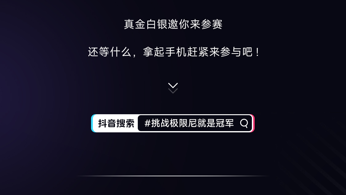 今日開賽!“挑戰極限尼就是冠軍”抖音挑戰賽邀您出戰!