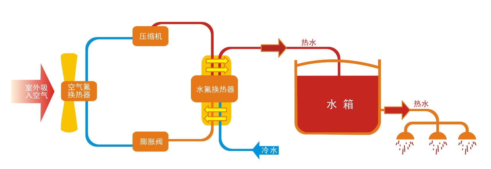 在工作過程中,空氣能熱泵首先通過蒸發(fā)器從室外空氣中吸收低溫熱能,使制冷劑蒸發(fā)成氣態(tài)。然后,氣態(tài)制冷劑被壓縮機壓縮,變成高溫高壓的氣體。接下來,高溫高壓的制冷劑進入冷凝器,在這里它將熱量傳遞給水或其他介質(zhì),從而加熱室內(nèi)空間或產(chǎn)生熱水。最后,經(jīng)過膨脹閥降壓后的制冷劑再次回到蒸發(fā)器,開始下一個循環(huán)。