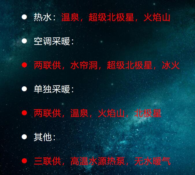 空氣能熱泵采暖如何選型,根據不同的需求,可參考芬尼空氣能的推薦,如下圖。