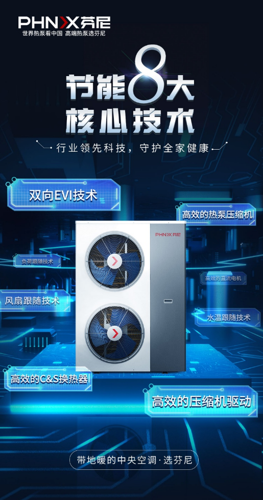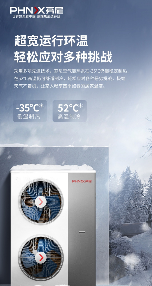 如在家用領域,芬尼金麒麟HPS系列空氣源熱泵具備冷暖兩用功能,智能操控,實現遠程一鍵開關機組及冷暖模式切換。在商業(yè)領域,商用150P超級北極星產品性能出眾,最低運轉溫度可達-41℃,這兩款產品均收獲了極佳的市場口碑。