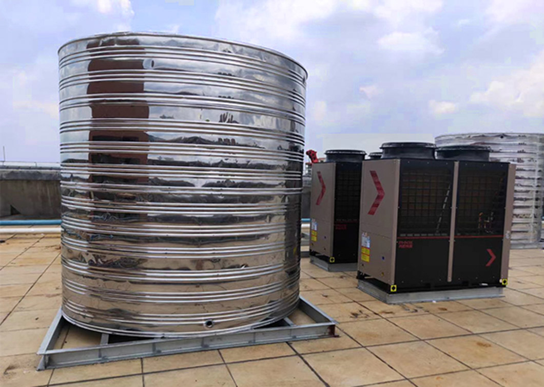 水箱設(shè)計(jì)成4個(gè)10噸水箱,主機(jī)選用4臺(tái)13P新款熱水機(jī)。