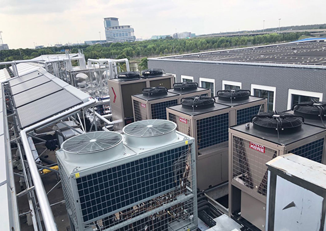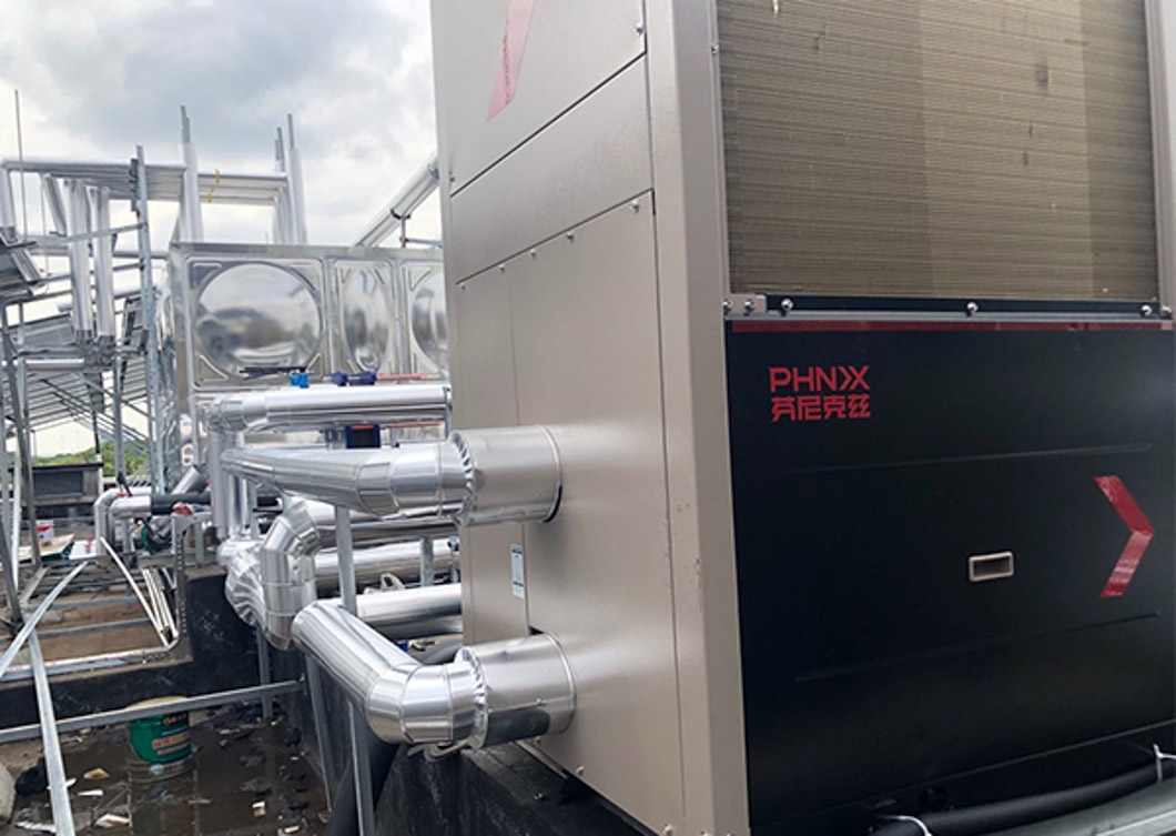 4臺(tái) 25匹循環(huán)熱水機(jī)PASHW250S-XI 與太陽(yáng)能相結(jié)合